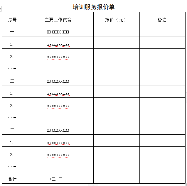 注:工作内容由报价参与单位自行分解、填写、添加。