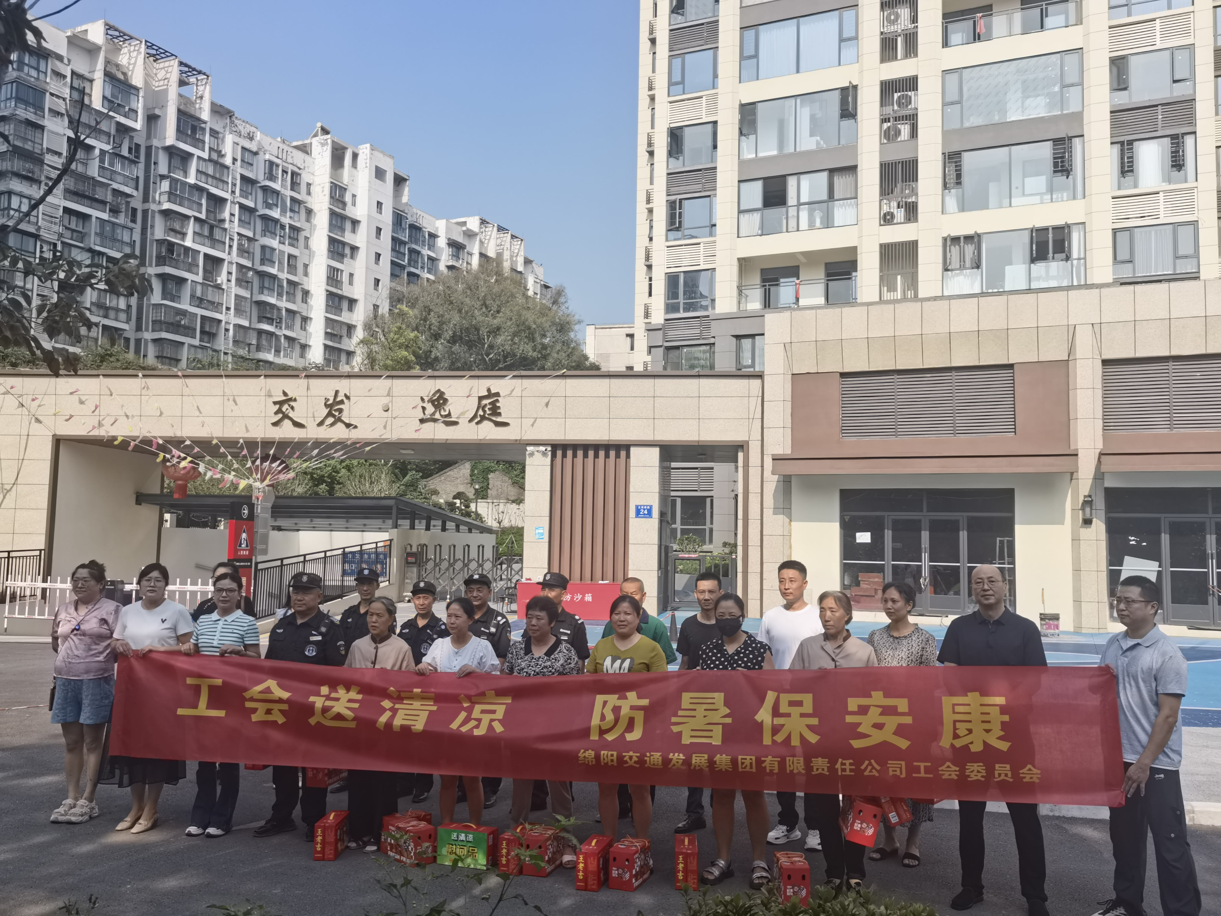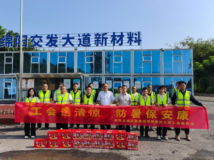 烈日当头,受绵阳市总工会委托,近日,ag尊龙凯时 领导班子成员分别带队到文武西路、高农司市场、ag尊龙凯时 逸庭、绕城高速收费站、绵阳客运总站、大道新材料公司沥青拌合站等6个慰问点,深入建设现场看望慰问一线职工,为坚守岗位的职工送去夏日清凉和防暑降温慰问品,并致以亲切问候。