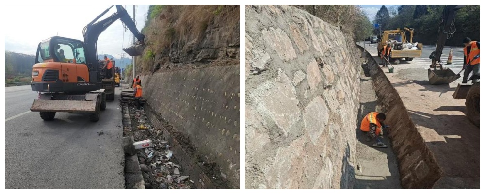 边沟作为公路排水系统的重要组成部分,如同人体的“毛细血管”,承担着收集和排除路面及边坡雨水的重要任务。各养护站采用人工与机械相结合的方式,对公路两侧的边沟进行“地毯式”清理。对于淤积严重、人工清理困难的路段,出动挖掘机进行清淤作业,同步对边沟的结构进行检查,对破损、变形的边沟及时进行修复和加固,确保其排水功能完好。
