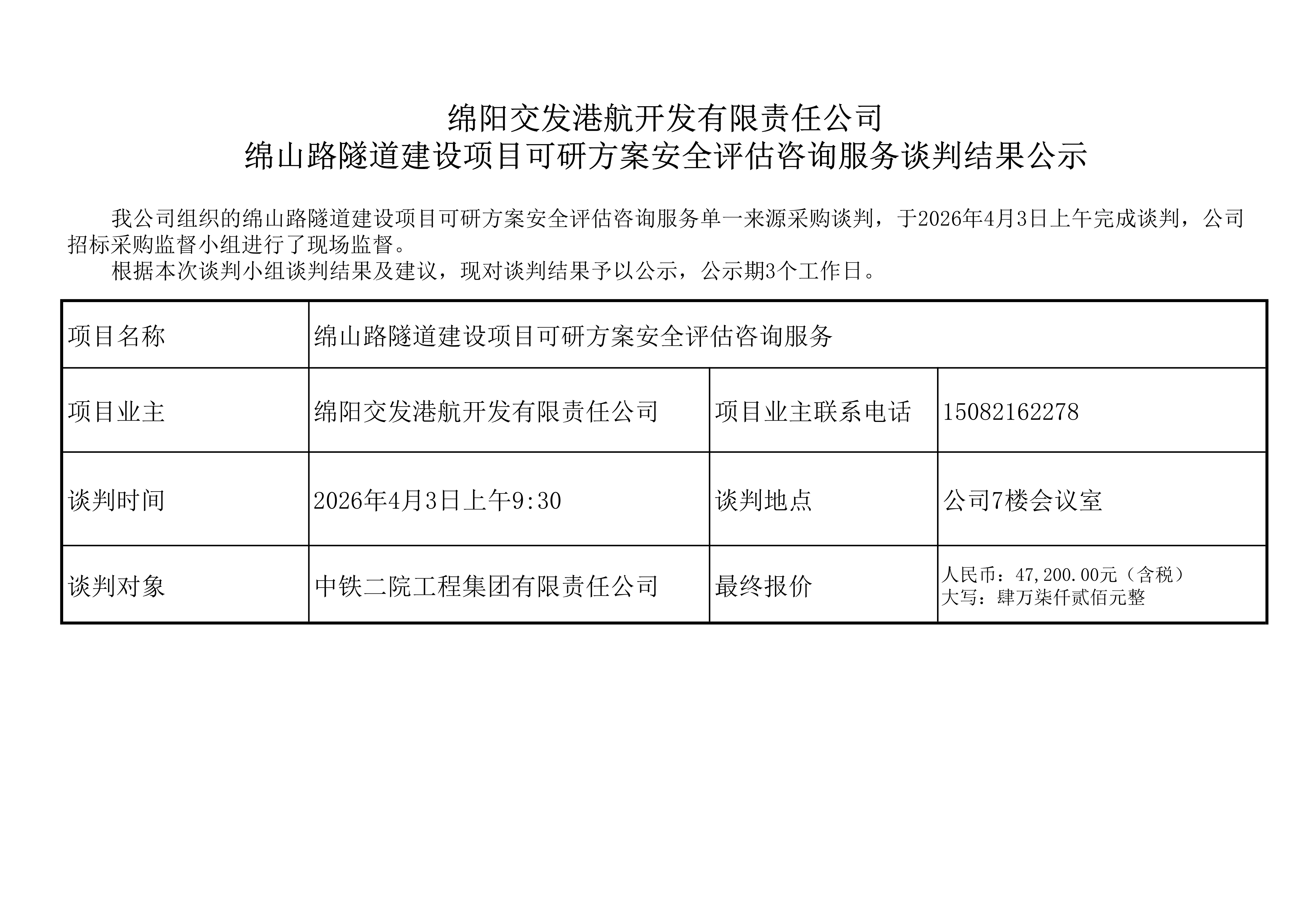 ag尊龙凯时 港航开发有限责任公司 绵山路隧道建设项目可研方案安全评估咨询服务谈判结果公示